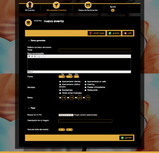 Para añadir el flyer o cartel/logotipo del evento, que es el que se mostrará en las búsquedas, la página dele evento y en su página de perfil de establecimiento, solo ha de pulsar sobre Seleccionar Archivo y buscar en su dispositivo, cuando lo haya encontrado haga doble clic para abrirlo o pulse Abrir/Subir.