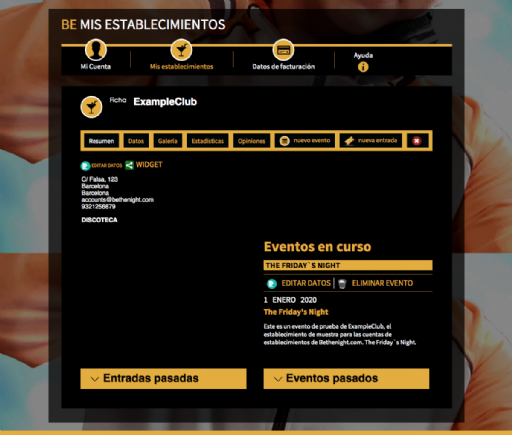 Para obtener más información sobre como registrarse o iniciar sesión puede consultar Recursos > Registrarse en Bethenight y Recursos > El entorno básico de Mis Establecimientos.