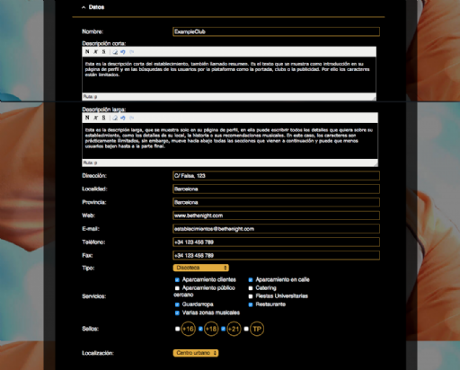 En cambio, la descripción larga, que se muestra solo en su página de perfil, en ella puede escribir todos los detalles que quiera sobre su establecimiento, como los detalles de su local, la historia o sus recomendaciones musicales. En este caso, los caracteres son prácticamente ilimitados, sin embargo, mueve hacia abajo todas las secciones que vienen a continuación y puede que menos usuarios bajen hasta a la parte final de la página.