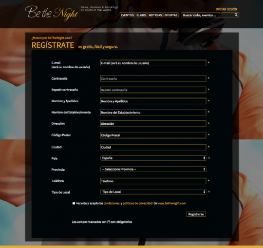 Registrarse en el sitio web como establecimiento es muy fácil, accediendo desde bethenight.com/establecimientos o desde el botón Establecimientos en el menú inferior de la página, puede completar el formulario que encontrará.